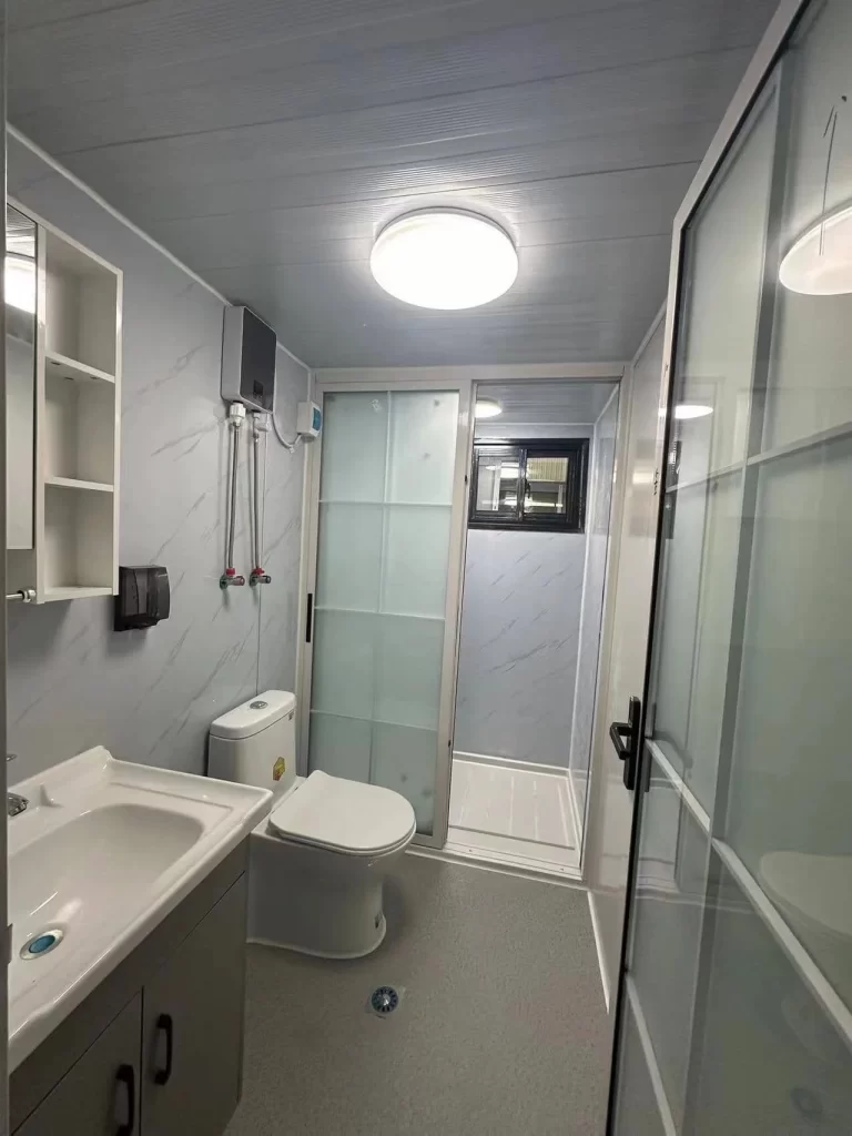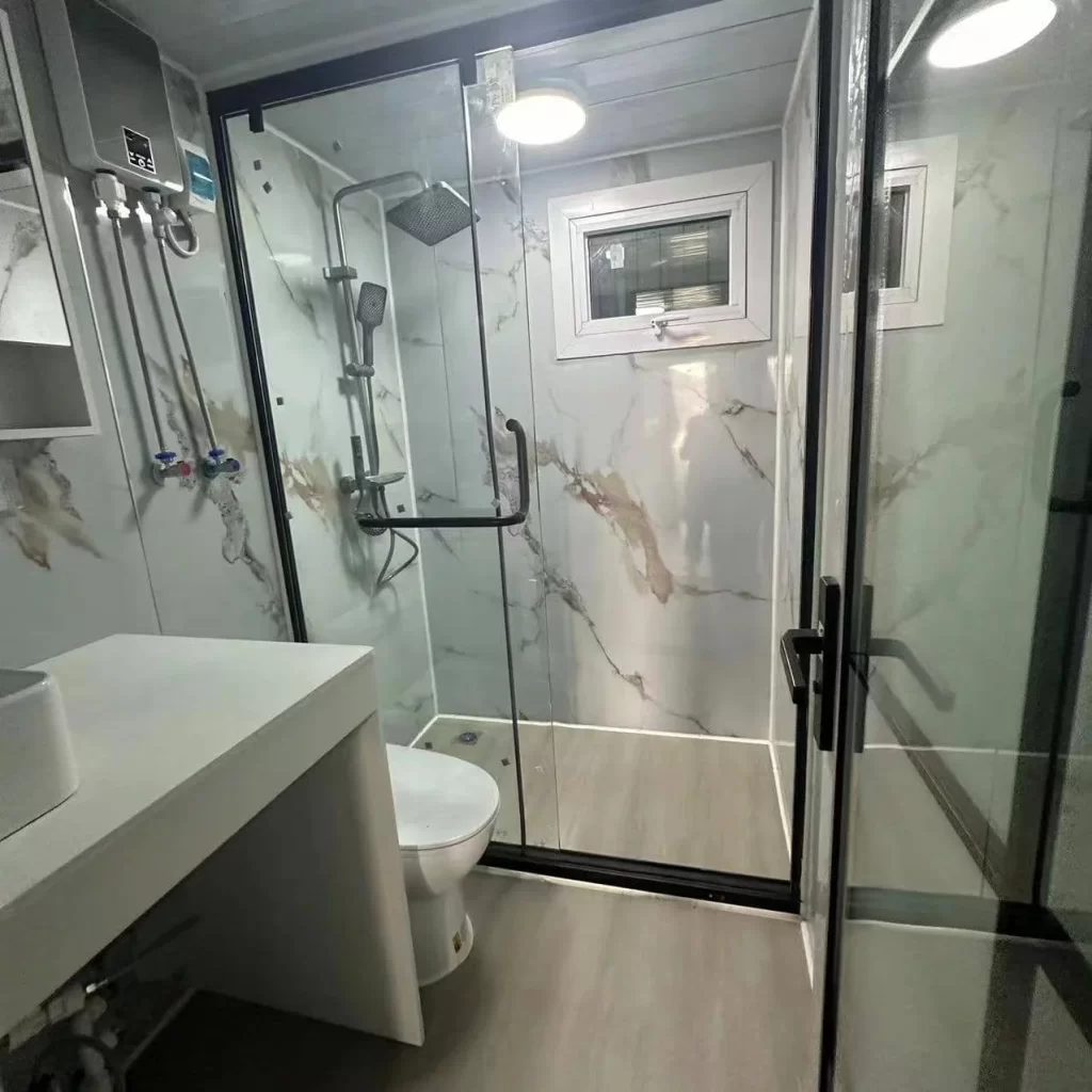 Aunque las casas modulares expandibles de 38m² son compactas, están equipadas con todas las comodidades necesarias. Cuentan con un baño con ducha y funciones de zonas húmedas y secas separadas, garantizando el máximo confort e higiene.